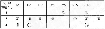 下表是元素周期表的一部分,回答下列有关问题:(8分)
