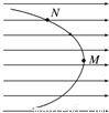 如图所示,一带电粒子以某速度进入水平向右的匀强电场中,在电场力作用下形成图中所示的运动轨迹.M和N是轨迹上的两点,其中M点在轨迹的最右点.不计重力,下列表述正确的是 ( )