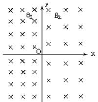 如图所示,空间存在着以y轴为理想分界的两个匀强磁场,左右两边磁场的磁感应强度分别为B1和B2,且B1∶B2=4∶3,方向如图。在原点O处有一静止的中性粒子,突然分裂成两个带电粒子a和b,已知a带正电,分裂后获得沿x轴正方向的速度。若在此后的运动中,当a粒子第4次经过y轴时,恰与b粒子相遇。则 ( )