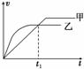 在t1时刻以前,乙车的速度始终比甲车增加的快