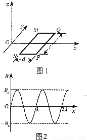 设金属框总电阻R=1.6Ω,垂直于导轨的边长L=0.20m,实验车与金属框的总质量m=2.0kg,磁感应强度B1=B2=B=1.0T,磁场运动速度v0=10m/s。回答下列问题: