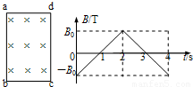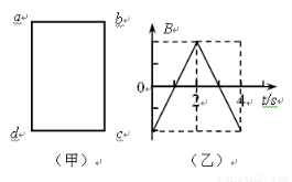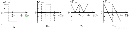矩形导线框abcd放在分布均匀的磁场中,磁场区域足够大,磁感线方向与导线框所在平面垂直,如图(甲)所示。在外力控制下线框处于静止状态。磁感应强度B随时间变化的图象如图(乙)所示,t=0时刻,磁感应强度的方向垂直导线框平面向里。在0~4s时间内,导线框ad边所受安培力随时间变化的图象(规定向左为安培力正方向)应该是下图中的( ? ? )