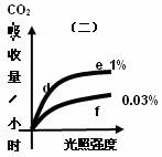 (4)图二中e点与d点相比较,e点的叶肉细胞中C3的含量 ;e点与f点相比较,e点时叶肉细胞中C3的含量 。(填“高”、“低”或“基本一致”)。