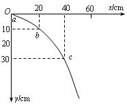 (8分)某同学在做平抛运动实验时得以了如图所示的物体运动轨迹,a、b、c三点的位置在运动轨迹上已标出。现研究平抛运动,以a点为坐标轴原点,竖直方向为y轴建立如图所示的坐标轴,相应点的坐标数值如图所示,当地的重力加速度g取10m/s2。则由图可得:![]()