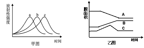 现代生物学认为细胞是一个系统,其内部的各种结构及其功能既相对独立又彼此联系。有人用35S标记一定量的氨基酸,并用来培养哺乳动物的乳腺细胞,并测得核糖体、内质网、高尔基体上放射性强度的变化曲线(甲图),以及在此过程中高尔基体、内质网、细胞膜膜面积的变化曲线(乙图),结合图解答下列问题:![]()