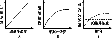 依据上图指出A、B、C所表示的被动的物质运输方式,是 。上述三种运输方式中,哪一种加入呼吸抑制剂后曲线会发生变化 。原因是______________________.