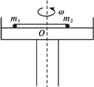 如图所示,两个质量分别为m1=50 g和m2=100 g的光滑小球套在水平光滑杆上,两球相距21 cm,并用细线连接,欲使两球绕轴以600 r/min的转速在水平面内转动而无滑动,两球离转动中心各为多少厘米?绳上拉力是多少?