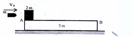 如图所示,质量为3m的木板静止在光滑的水平面上,一个质量为2m的物块(可视为质点),静止在木板上的A端,已知物块与木板间的动摩擦因数为。现有一质量为m的子弹(可视为质点)以初速度v0水平向右射入物块并穿出,已知子弹穿出物块时的速度为