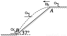 跳台滑雪是一种极为壮观的运动,运动员穿着滑雪板,从跳台水平飞出,在空中飞行一段距离后着陆,如图所示.设运动员连同滑雪板的总质量m=50kg,从倾角θ=37°的坡顶A点以速度v=20m/s沿水平方向飞出,恰落到山坡底的水平面上的B处.(g=10m/s2,sin37°=0.6,cos37°=0.81)求: