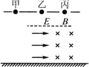 三个质量与带电量都相同的小球甲、乙、丙,由同一水平高度从静止自由落下,在下落过程中空气阻力不计,乙、丙小球分别穿过水平方向的匀强电场、匀强磁场,如图,关于三球下落到地面的时间和到达地面 时的动能大小的说法正确的是