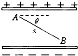 如图所示,是一个平行板电容器,其电容为C,带电量为Q,上极板带正电,现将一个试探电荷q由两极板间A点移动到B点,A、B两点间的距离为s,连线AB与极板间的夹角为,则电场力对试探电荷q所做的功等于