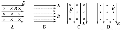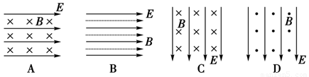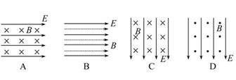 在如图所示的匀强电场和匀强磁场共存的区域内(不计重力),电子可能沿水平方向向右做直线运动的是( ) ![]()