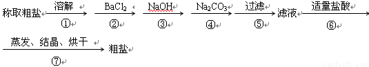 (2)第④步中,写出相应的化学方程式(设粗盐溶液中Ca2+的主要存在形式为CaCl2)