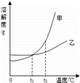 D.t1℃时,甲和乙两种物质的溶解度相等