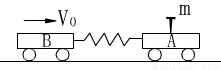 在光滑的水平面上,有两个质量都是M的小车A和B,两车间用轻弹簧相连,它们以速度v0向右匀速运动,有一质量为m的铁钉从高处自由落下,正好嵌入A车,在两车继续向前运动的过程中,弹簧的弹性势能的最大值是多少?