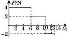 质量为2 kg的物体静止在水平面上,物体与水平面的动摩擦因数为0.1,作用在物体上的水平拉力F随时间的变化如图所示(以向右为正方向)。(g取10 m/s2。)![]()