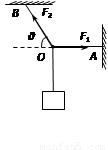 如图所示,重物的质量为m,轻细绳AO和BO的A端、B端是固定的。平衡时AO是水平的,BO与水平方向的夹角为。AO的拉力F1,BO的拉力F2。将作用点A沿竖直墙壁向上缓慢移动,在O点位置不动条件下,点A移动过程中( )![]()