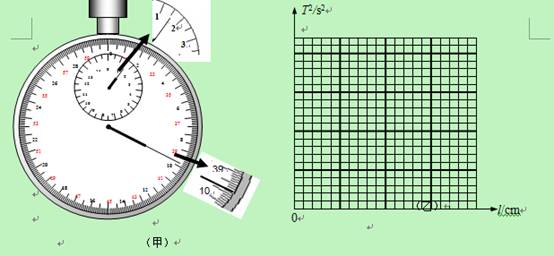 请你帮助该同学以l为横坐标,T 2为纵坐标将所得数据在图乙所示的坐标系中作出图线,并根据图线求得重力加速度g= m/s2 (取3位有效数字) 。