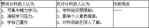 | 赞成分科的人认为 | 反对分科的人认为 | 你的观点 |