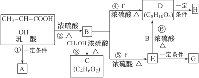 乳酸分子式为C3H6O3,在一定的条件下可发生许多化学反应,下图是采用化学方法对乳酸进行加工处理的过程,其中A、H、G为链状高分子化合物(F是CH2OHCH2OH).