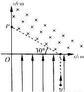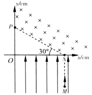 如图所示,在xOy坐标系中,x轴上N点到O点的距离是12cm,虚线NP与x轴负向的夹角是30°.第Ⅰ象限内NP的上方有匀强磁场,磁感应强度B=1T,第IV象限有匀强电场,方向沿y轴正向.一质量m=8×10-10kg.电荷量q=1×10-4C带正电粒子,从电场中M(12,-8)点由静止释放,经电场加速后从N点进入磁场,又从y轴上P点穿出磁场.不计粒子重力,取
