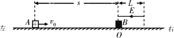 L=0.4 m的匀强电场区域,场强E=6 x 105 N/C、方向水平向左.不带电的物块B静止在电场边缘的O点,带电量q=5×105 N/C、质量mA=1×10-2 kg的物块A在距O点s=2.25 m处以Vo=5 m/s的水平初速度向右运动,并与B发生碰撞,假设碰撞前后A、B构成的系统没有动能损失.A的质量是B的K(K>1)倍,A、b与地面间的动摩擦因数都为μ=0.2,物块均可视为质点,且A的电荷量始终不变,取g=10 m/S2.![]()