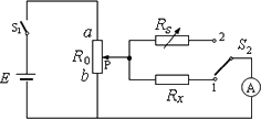 用替代法测一个未知电阻Rx的阻值可以用如图所示电路,图中RS为电阻箱(RS的最大阻值大于待测电阻Rx的阻值),S2为单刀双掷开关,R0为滑动变阻器,最大阻值为20 Ω.为了电路安全,测量前应将滑动变阻器的滑片P调至________(选填“a”或“b”),电阻箱RS阻值应调至________(选填“最大”或“最小”).闭合S1开始实验,接下来有如下一些操作: