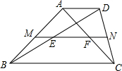 如图,梯形ABCD中,AD∥BC,中位线MN与对角线BD交于点P.