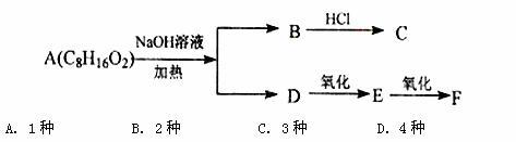 某有机物A(C8H16O2)能发生下图所示的变化,其中C与F是同分异构体。则符合条件的A的同分异构体有多少种 ( )
