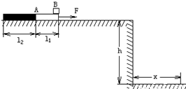 如图所示,在高出水平地面h=1.8m的光滑平台上放置一质量M=2kg、由两种不同材料连接成一体的薄板A,其右段长度l1=0.2m且表面光滑,左段表面粗糙。在A最右端放有可视为质点的物块B,其质量m=1kg。B与A左段间动摩擦因数μ=0.4。开始时二者均静止,现对A施加F=20N水平向右的恒力,待B脱离A(A尚未露出平台)后,将A取走。B离开平台后的落地点与平台右边缘的水平距离x=1.2m。(取g=10m/s2)求: