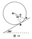 如图14所示,一个半径为R的非均质圆球,其重心不在球心O点,先将它置于水平地面上,平衡时球面上的A点和地面接触;再将它置于倾角为30°的粗糙斜面上,平衡时球面上的B点与斜面接触,已知A到B的圆心角也为30°。试求球体的重心C到球心O的距离。