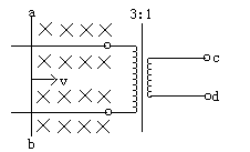 .如图所示,一个变压器原副线圈的匝数比为3∶1,原线圈两端与平行导轨相接,今把原线圈的导轨置于垂直纸面向里、磁感应强度为B=2T的匀强磁场中,并在导轨上垂直放一根长为L=30cm的导线ab,当导线以速度v=5m/s做切割磁感线的匀速运动时(平动),副线圈cd两端的电压为________V。![]()