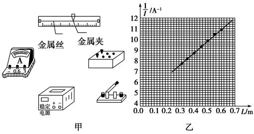(3)该小组测得电流与金属丝接入电路长度关系的数据,并据此绘出了如图乙的关系图线,其斜率为