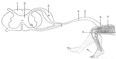 (2006?德州)膝跳反射是人体最简单的反射,在临床上常用于诊断患者的神经系统是否受损或患病.图是该反射的示意图,请据图回答问题: