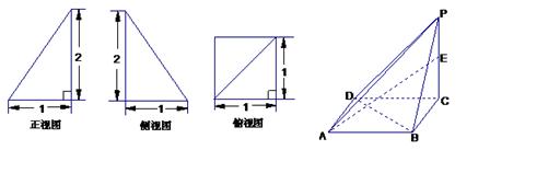 (12分)已知一四棱锥P-ABCD的三视图如下,E是侧棱PC上的动点。
