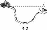 5. 如图3所示,在水平路面上一运动员驾驶摩托车跨越壕沟,壕沟两侧的高度差为0.8m. 取g=10m/s2,则运动员跨过壕沟所用的时间为 ( )