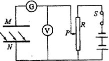 23.(15分)如图所示是测定光电效应产生的光电子荷质比的实验原理图;两块平行板相距为d,放在真空容器中,其中N金属板受光线照射时发射出沿不同方向运动的光电子,形成电流,从而引起电流表指针偏转。若调节R,逐渐增大极板间电压,可以发现电流逐渐减小,当电压表示数为u时,电流恰好为零;切断开关,在MN间加上垂直纸面的匀强磁场,逐渐增大磁感应强度,也能使电流为零。当磁感应强度B时,电流恰好为零。求光电子的荷质比为多少?