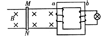 8.如图所示,a线圈与导轨相连,b线圈与一小灯泡相连.导体棒MN沿导轨作切割磁感线的运动时,小灯泡能发光,则MN不可能是