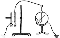 9.如上左图是探究影响平行板电容器电容大小因素的实验装置,带电的平行板电容器的N板与一静电计相接,M板接地,则
