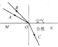 19.两束单色光A、B同时由空气射到某介质的界面MN上,由于折射而合成一复色光C,如下左图所示,下列说法正确的有