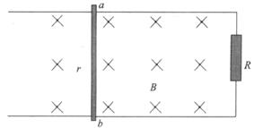 16.(14分)如下图所示,间距为L的光滑平行金属导轨,水平地放在竖直方向的磁感应强度为B的匀强磁场中,一端接电阻R,一电阻是
