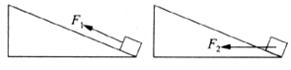 的物体由静止开始沿一粗糙的固定斜面由底端拉至顶端,两次所用时间相同,第一次力F1沿斜面向上,第二次力F2沿水平方向,则两个过程
