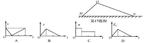 17.如图所示,光滑轨道MO和ON顶端对接且ON=2MO。小球自M点以初速度