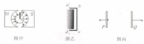 16.(14分)某种发电机的内部结构平面图如图甲,永磁体的内侧为半圆柱面形,它与圆柱形铁芯之间的窄缝间形成如图所示B=0.5T的磁场。在磁场中有一个如图乙所示的U形导线框abcd。已知线框ab和ed边长均为0.2m,bc长为0.4m,线框以w=200