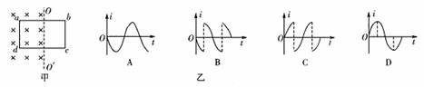 3.如图甲所示,单匝矩形线圈的一半放在具有理想边界的匀强磁场中,线圈轴线OO′与磁场边界重合t=0时线圈从图甲所示的位置开始匀速转动,规定电流方向沿abcd为正方向,则线圈内感应电流随时间变化的图象应是图乙中的 ( )