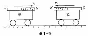 (2)由于磁铁磁性极强,故两车不会相碰,试求出两车距离最短时乙车速度为多少? 方向如何?