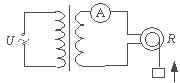 19.如图,有一理想变压器,原副线圈的匝数比为n.原线圈接正弦交流电压U,输出端接有一个交流电流表和一个电动机。电动机线圈电阻为R。当输入端接通电源后,电流表读数为I,电动机带动一重物匀速上升。下列判断正确的是 ( )