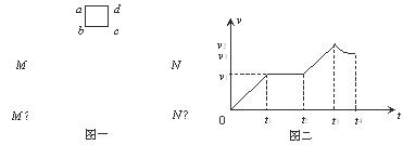 21.如图一所示,abcd是位于竖直平面内的正方形闭合金属线框,在金属线框的下方有一匀强磁场区域, MN和M ′N ′是匀强磁场区域的水平边界,并与线框的bc边平行,磁场方向与线框平面垂直。现金属线框由距MN的某一高度从静止开始下落,图二是金属线框由开始下落到完全穿过匀强磁场区域瞬间的速度-时间图象。已知金属线框的质量为m,当地的重力加速度为g,图像中坐标轴上所标出的字母均为已知量。根据题中所给条件,以下说法正确的是 ( )