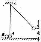 17.小球A、B的质量均为m,A球用轻绳吊起,B球静止放于水平地面上。现将小球A拉起h高度由静止释放,如下图所示。小球A摆到最低点与B球发生对心碰撞后粘在一起共同上摆。不计两小球相互碰撞所用时间,忽略空气阻力作用。在两小球碰撞过程中,系统机械能损失了