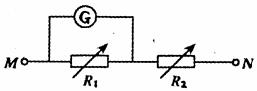 18.如下图所示,G是电流表,R1、R2是两个可变电阻,调节可变电阻R1、R2,可以改变电流表G的示数。当M、N间的电压为6V时,电流表的指针刚好偏转到最大刻度。将M、N间的电压改为5V时,若要使电流表G的指针偏转到最大刻度,下列方法中一定可行的是